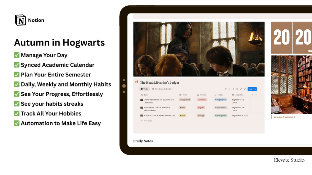 The Ultimate Student Dashboard | Autumn in Hogwarts Template